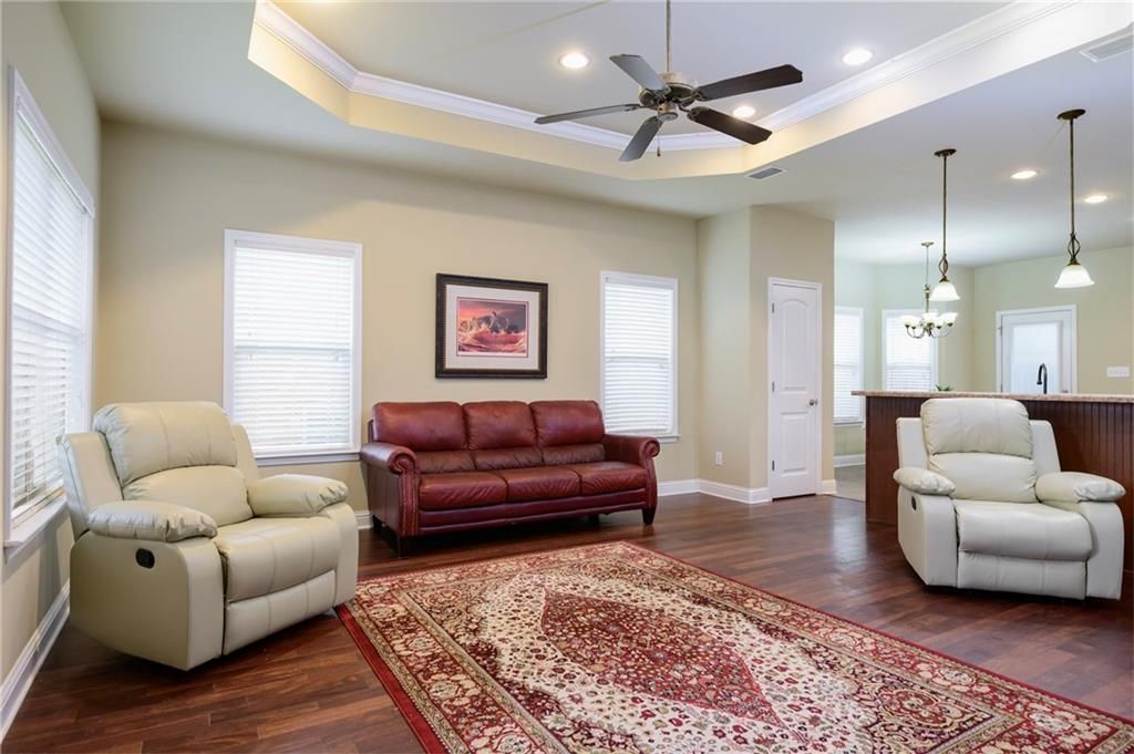 Welcome to this charming 3 bedroom, 2 bathroom home located in a cozy neighborhood in Semmes, AL. This well-maintained brick home offers a spacious and inviting layout with beautiful wood flooring in the main living areas and an open-concept design that flows seamlessly into the kitchen and dining space-perfect for everyday living and entertaining.The kitchen features ample cabinetry, stainless appliances, and a large breakfast bar, providing plenty of space for cooking and gathering. The living room boasts tray ceilings and abundant natural light, creating a warm and welcoming atmosphere.The primary suite offers a spacious bedroom, double vanity, walk-in closet, and separate shower, providing a comfortable retreat at the end of the day. Two additional bedrooms and a full bathroom offer flexibility for guests, family, or a home office.Step outside to enjoy the fenced backyard, ideal for pets, play, or outdoor gatherings. With its convenient location and comfortable layout, this home offers the perfect blend of peaceful neighborhood living while still being close to shopping, dining, and local amenities.Don't miss your chance to see this beautiful home-schedule your showing today!